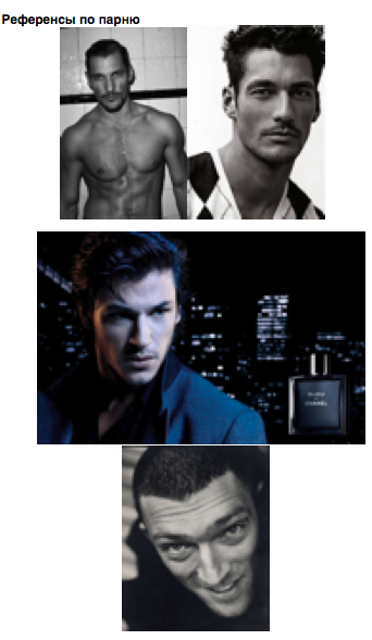 Подходит парень из рекламы Chanel, резкие черты лица. Нам нужна мужская харизма, чтобы нашего героя хотели девочки, а мальчики стремились быть похожими на него.