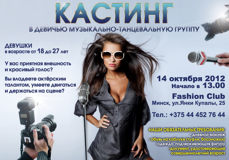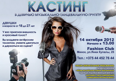 Кастинг пройдет 14 октября 2012 года в Fashion Club (Минск, ул. Я. Купалы, 25)