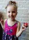 О себе: Занимаюсь художественной гимнастикой, люблю петь, рассказывать стихи, придумывать для себя всякие роли и играть в придуманные мной игры.