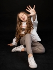 О себе: учусь играть на фортепиано, занимаюсь вокалом с пяти, дзюдо, плаванием, есть награды за участие в конкурсах чтецов и вокальных конкурсах. Есть опыт съемок в рекламе детской одежды и передачи Детское время на канале Беларусь 4.
